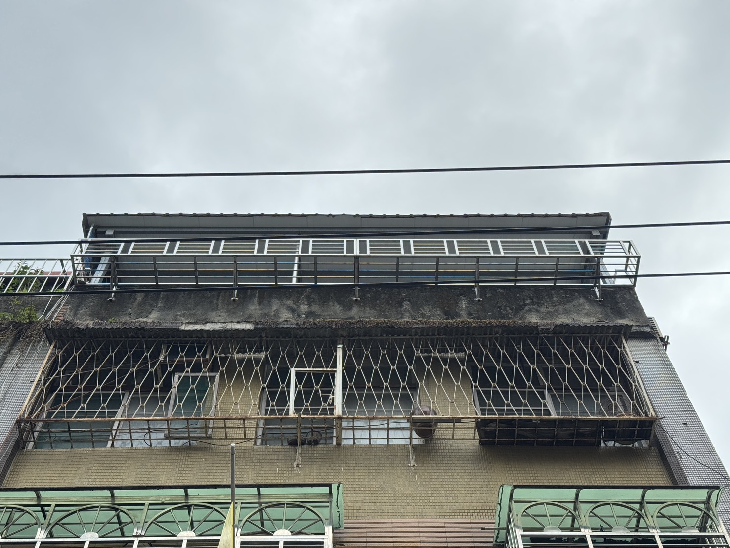 女兒牆底部磁磚鬆脫、剝落,