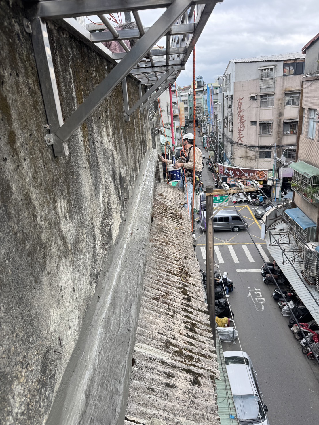 採用 蜘蛛人高空作業方式 進行施工,